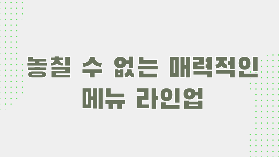 | 가격대 | 메인 메뉴 10,000원 ~ 21,000원, 사이드 메뉴 6,500원 ~ 9,000원 |