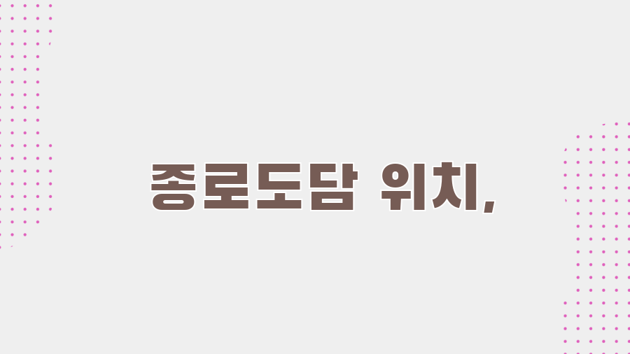 종로도담 위치, 접근성은 어떨까요?