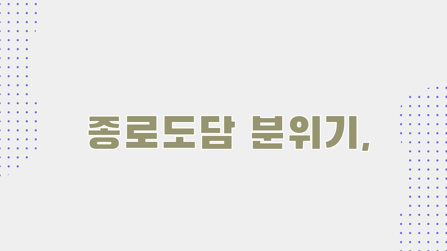 종로도담만의 특별한 매력을 파헤쳐 보겠습니다.