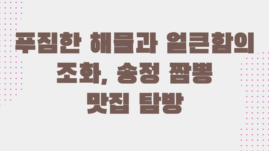 맛과 가격이라는 두 마리 토끼를 모두 잡을 수 있는 송정의 가성비 짬뽕 맛집을 찾는다면, 팀원 모두의 만족도를 높이는 성공적인 회식을 만들 수 있을 것입니다.