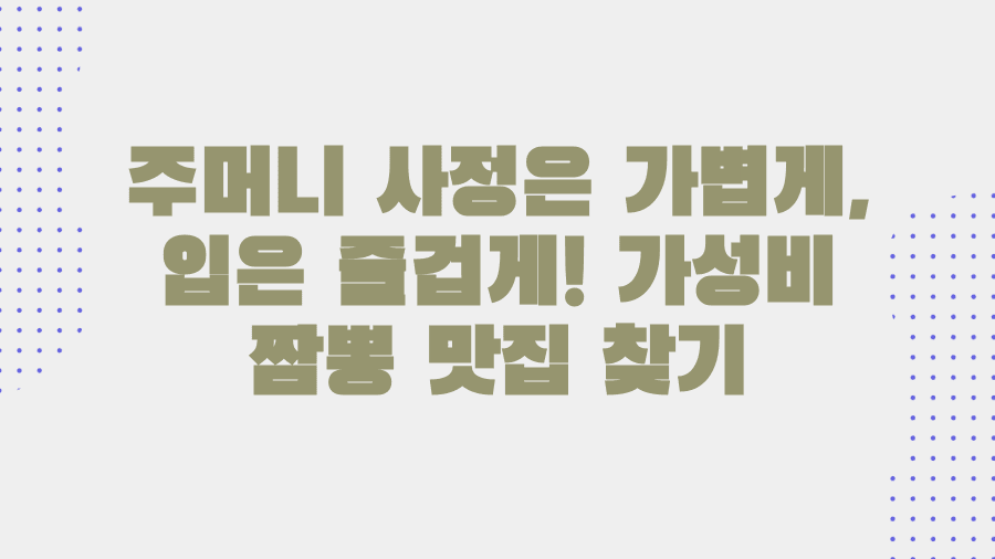 이곳들은 짬뽕, 백반 등 부담 없이 즐길 수 있는 메뉴들을 중심으로, 합리적인 가격으로 만족스러운 식사를 제공합니다. 특히 '가성비 좋은 짬뽕 맛집 (부산 송정)'과 같은 하위 주제는 이러한 경제적인 부분을 중요하게 생각하는 직장인들의 니즈를 직접적으로 반영하고 있습니다.