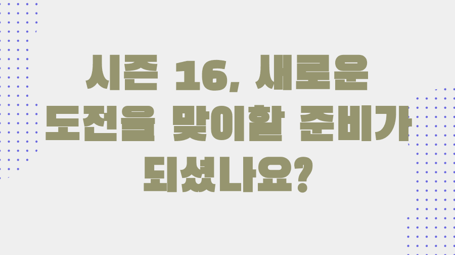 시즌 16, 새로운 도전을 맞이할 준비가 되셨나요?